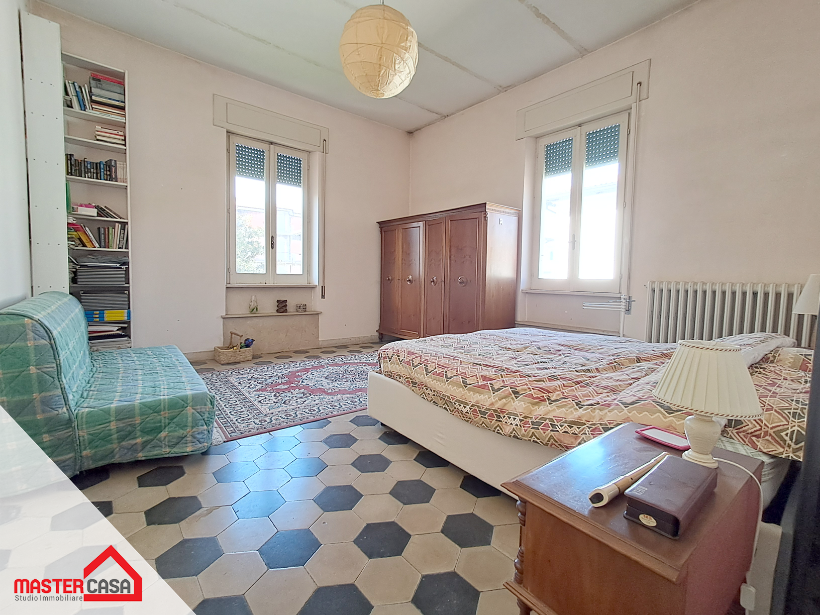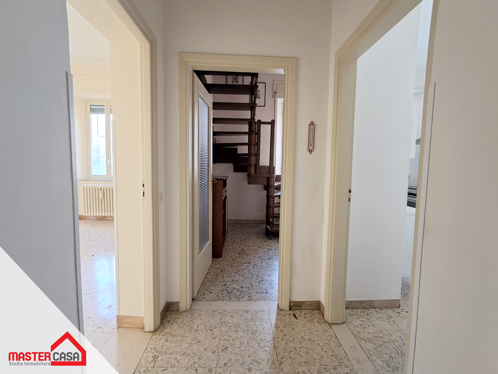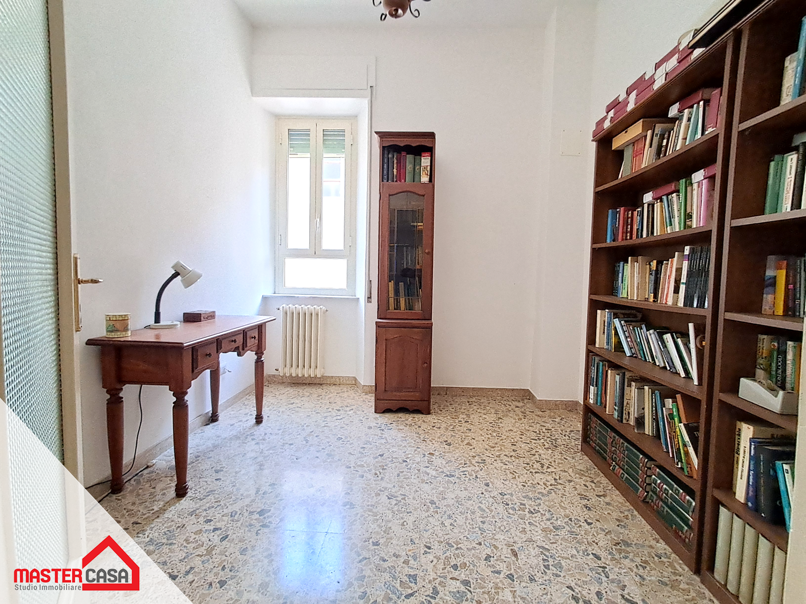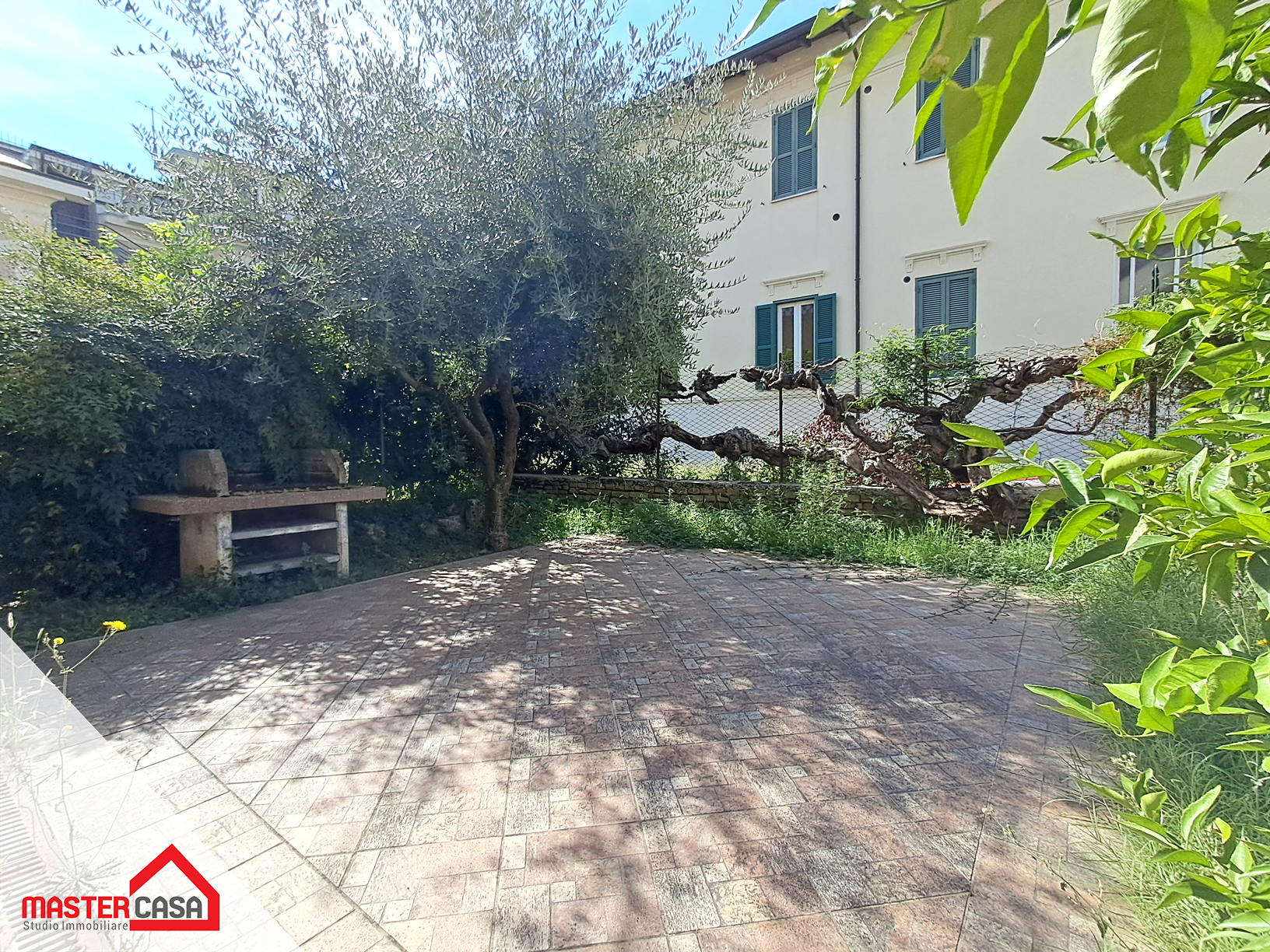 In zona centralissima, proponiamo in vendita porzione di bifamiliare di 130 mq calpestabili, posta al piano terra rialzato e piano primo di piccolo condominio costituito da sole due unità abitative. L’immobile è composto al pianoterra da ingresso, cucina abitabile, soggiorno, studio, camera e bagno. Attraverso una comoda scala in legno massello si accede al piano primo formato da due grandi camere da letto. Completano la proprietà cantina al piano seminterrato di 50 mq, corte esclusiva pavimentata con posti auto e giardino. Riscaldamento autonomo. Buono stato. Ottima esposizione.