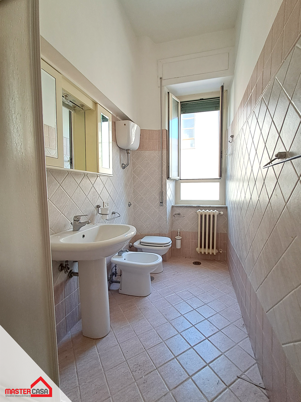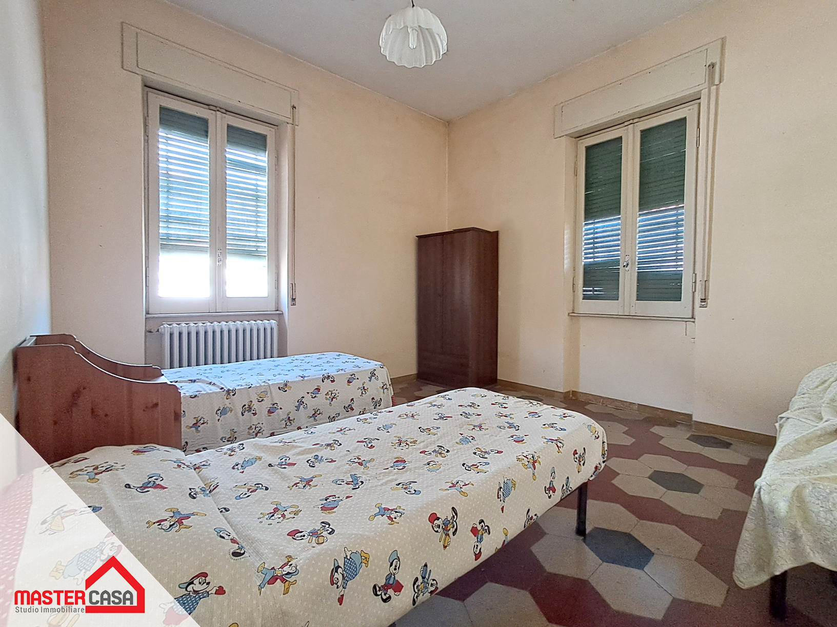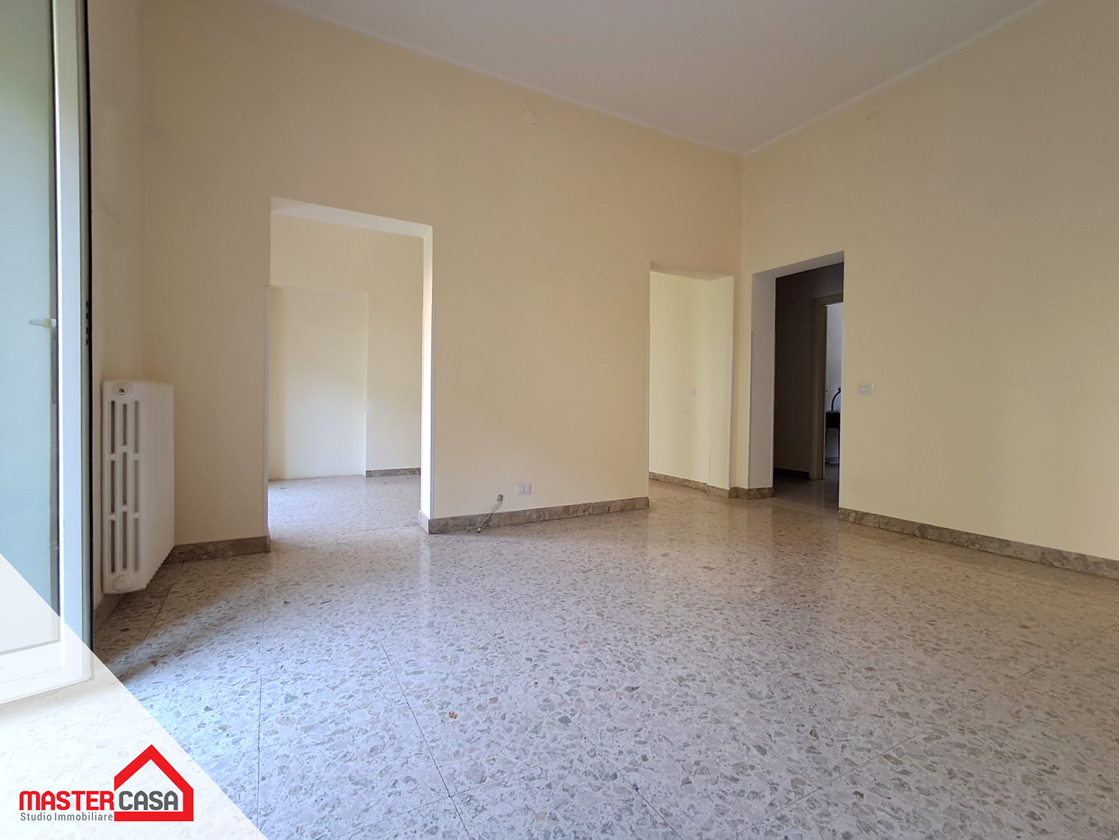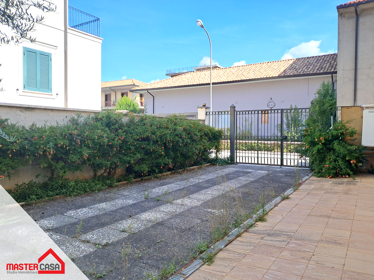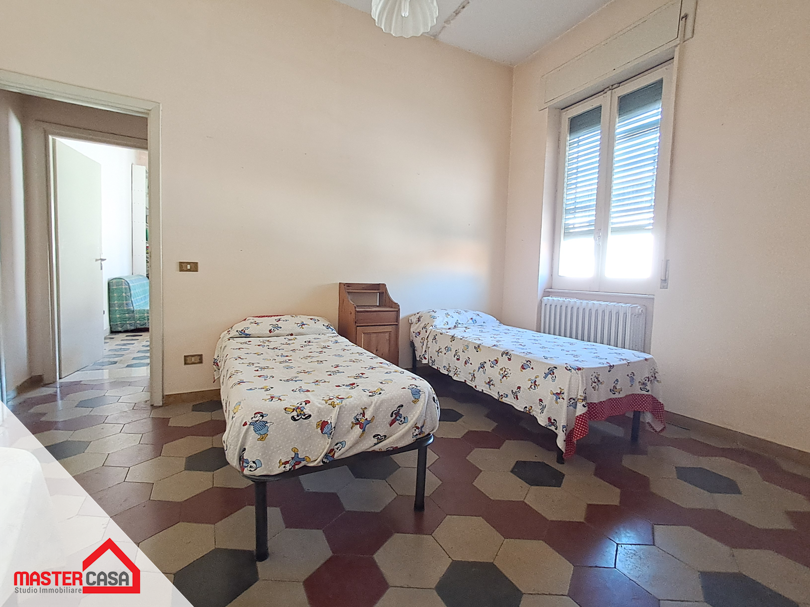 In zona centralissima, proponiamo in vendita porzione di bifamiliare di 130 mq calpestabili, posta al piano terra rialzato e piano primo di piccolo condominio costituito da sole due unità abitative. L’immobile è composto al pianoterra da ingresso, cucina abitabile, soggiorno, studio, camera e bagno. Attraverso una comoda scala in legno massello si accede al piano primo formato da due grandi camere da letto. Completano la proprietà cantina al piano seminterrato di 50 mq, corte esclusiva pavimentata con posti auto e giardino. Riscaldamento autonomo. Buono stato. Ottima esposizione.